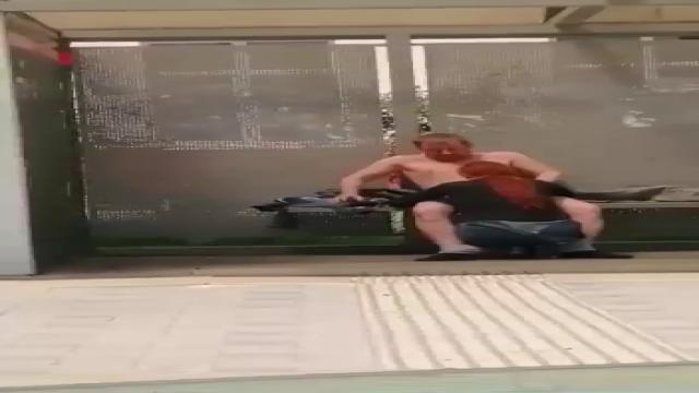 Пацан на машине, когда ехал по городу, то снял на телефон как трахаются алкаши на остановке. Он был в шоке, когда увидел, как рыжая шкура сосет голому мужику на улице. Ведать рыжеволосая алкашка решила ублажить своего собутыльника минетом зато, что он поделился с ней водочкой. Короче, синяки провели бартер прямо на остановке.
